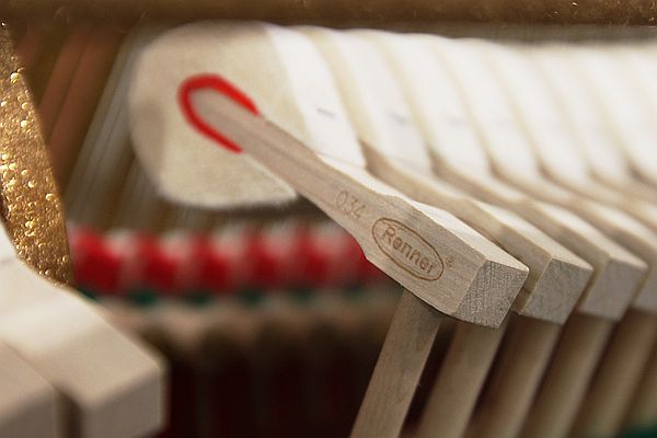 恺撒堡钢琴和珠江钢琴在选材工艺用料等级等许许多多地方都完全不相同,外行消费者没有能力一一去鉴别这些地方都不同。但是有一个简单易行的方法,就是打开顶盖板,看凯撒堡钢琴的榔头。恺撒堡钢琴的榔头都是选用德国最顶级的雷诺榔头,而珠江钢琴就没有用这么好的榔头。榔头的侧面有雷诺的logo标志,无论多么外行的消费者一看就懂。