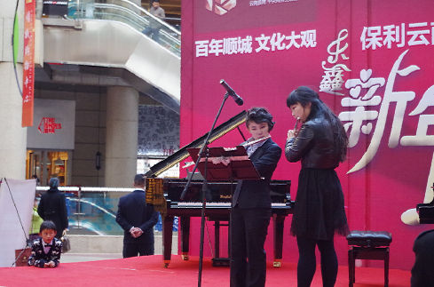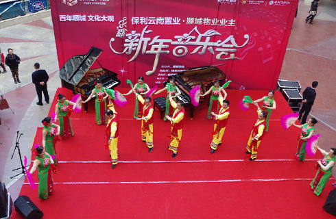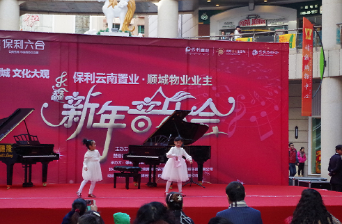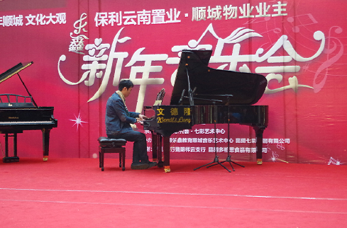 昨日由保利·置业、七彩乐器、顺城物业、乐鑫教育联合的“新年音乐会”在顺城购物中心广场举办。演出队伍有来自社区中老年人的“扇子舞”、“打鼓舞”、萨克斯独奏,顺城业主的小朋友献上的“双人舞蹈”和“孔雀独舞”、顺城物业员工的现代舞、合唱及乐器表演,由七彩乐器培训学校的学生表演的钢琴“四首联弹”、独奏、及老师表演的电吉他独奏,都让人眼前一亮、耳目一新,为顺城购物中心在周末休闲、购物的市民提供一场精彩且轻松的音乐会!音乐会由七彩乐器有限公司的朱睿老师表演的李斯特的曲目压轴,为在场的观众呈现了一场精彩且回昧无穷的音乐盛典。