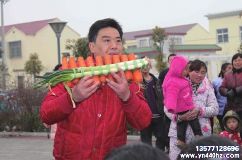 这名中年男子叫南卫东,不仅嘴上正吹着红薯,旁边还放着胡萝卜、土豆、冬瓜、藕等各种各样的蔬菜,这些都是用来表演的。一曲结束,围观的村民掌声四起,纷纷叫绝。随后,南卫东再次用胡萝卜制成的排箫演奏了《上海滩》,用山药吹出了《雪绒花》,声音无不优美。“没想到平时吃的菜也能吹出歌,”村民听到演奏连称,“这人太有才了”。